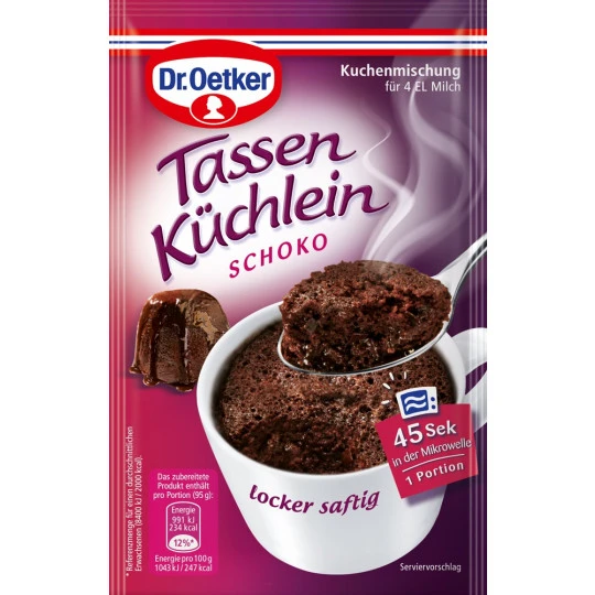 Das Tassen Küchlein Schoko ist rasant zubereitet und ist genau das richtige für den süßen Hunger zwischendurch. Einfach mit Milch in einer Tasse angerührt, 45 Sekunden in der Mikrowelle gebacken und fertig ist die schokoladige Kuchenportion. Herrlich saftig und intensiv im Geschmack, so warm und frisch wie im Ofen zubereitet und zum sofortigen Genuss bereit!